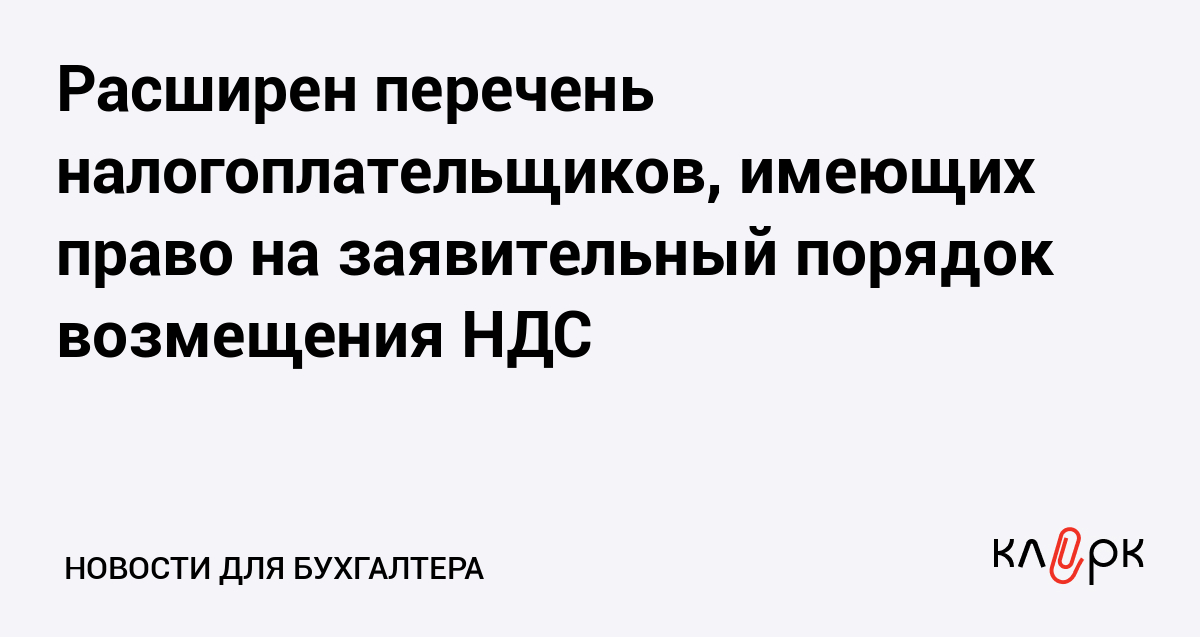 Расширен перечень налогоплательщиков, имеющих право на заявительный порядок возмещения НДС