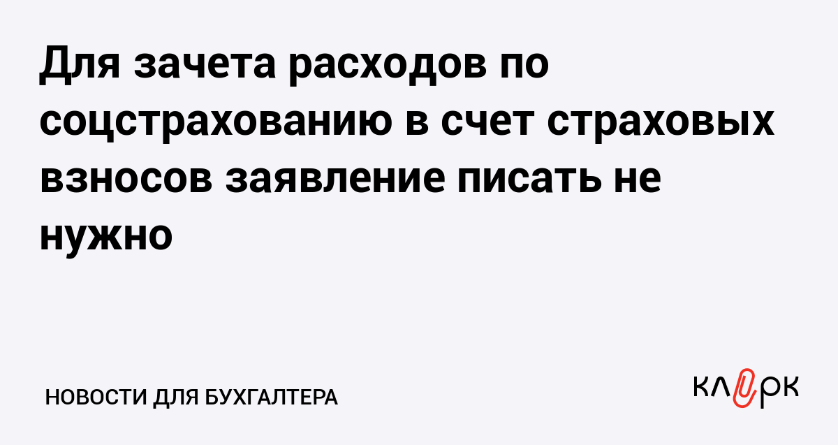 Для зачета расходов по соцстрахованию в счет страховых взносов заявление писать не нужно