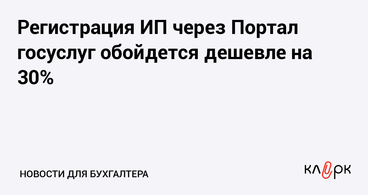 Регистрация ИП через Портал госуслуг обойдется дешевле на 30%