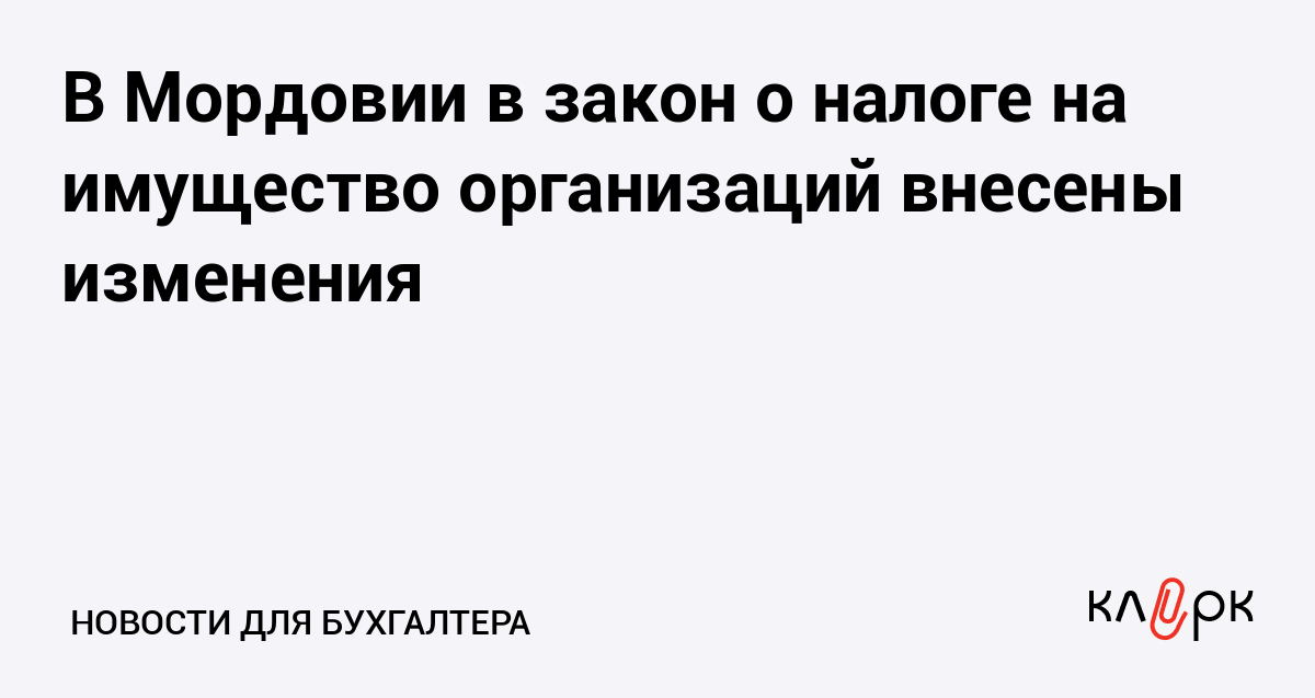 В Мордовии в закон о налоге на имущество организаций внесены изменения