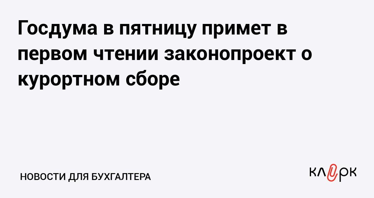 Госдума в пятницу примет в первом чтении законопроект о курортном сборе