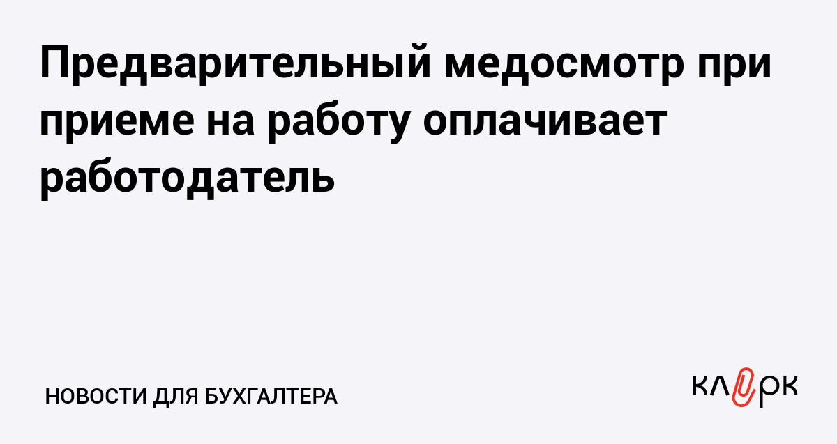 Предварительный медосмотр при приеме на работу оплачивает работодатель