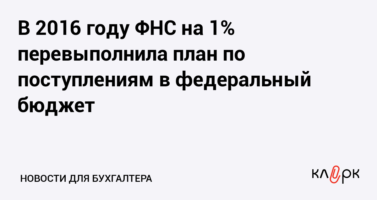 В 2016 году ФНС на 1% перевыполнила план по поступлениям в федеральный бюджет