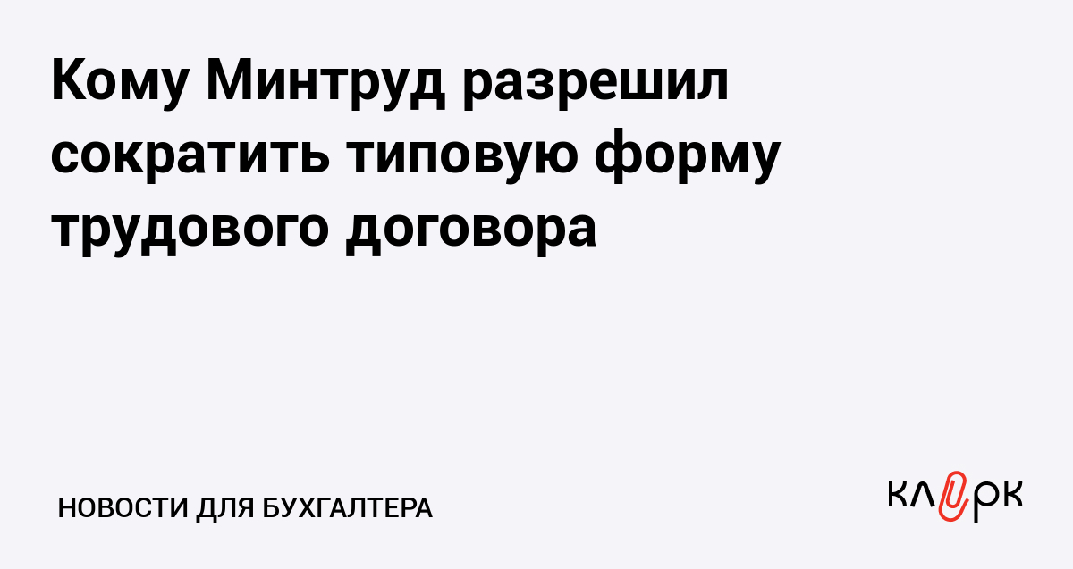 Кому Минтруд разрешил сократить типовую форму трудового договора