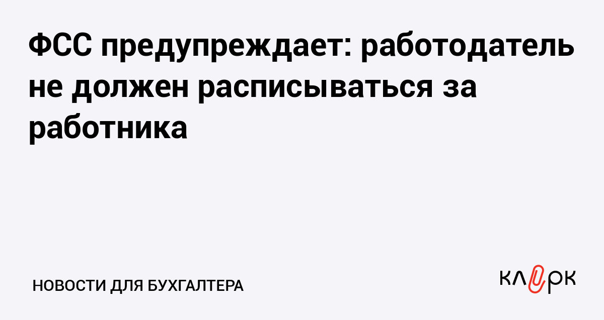 ФСС предупреждает: работодатель не должен расписываться за работника