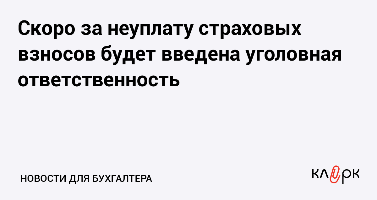 Скоро за неуплату страховых взносов будет введена уголовная ответственность
