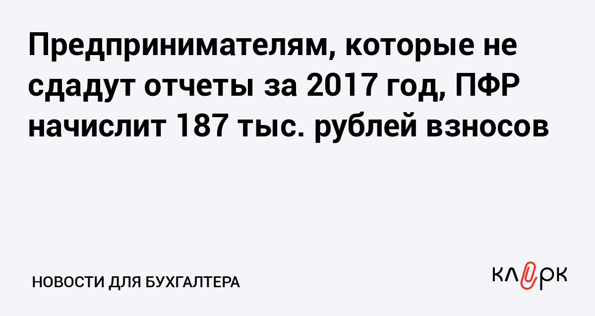 Предпринимателям, которые не сдадут отчеты за 2017 год, ПФР начислит 187 тыс. рублей взносов