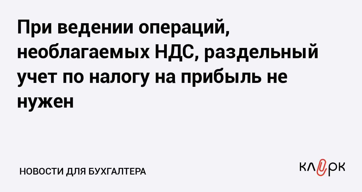 При ведении операций, необлагаемых НДС, раздельный учет по налогу на прибыль не нужен