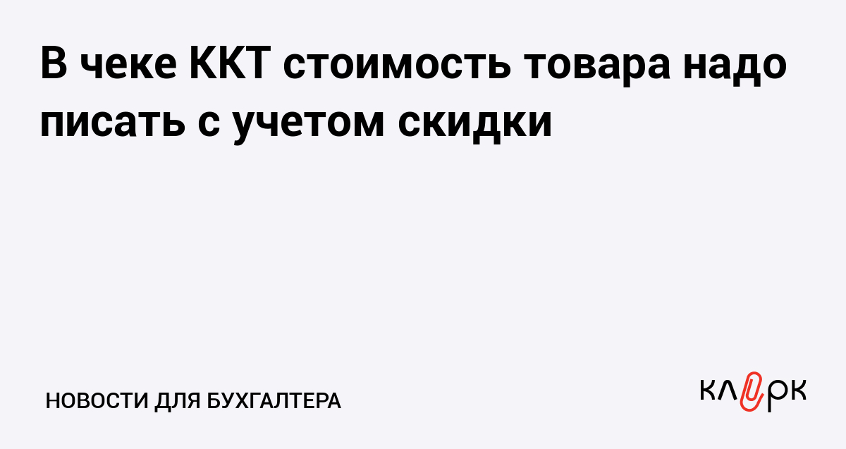 В чеке ККТ стоимость товара надо писать с учетом скидки