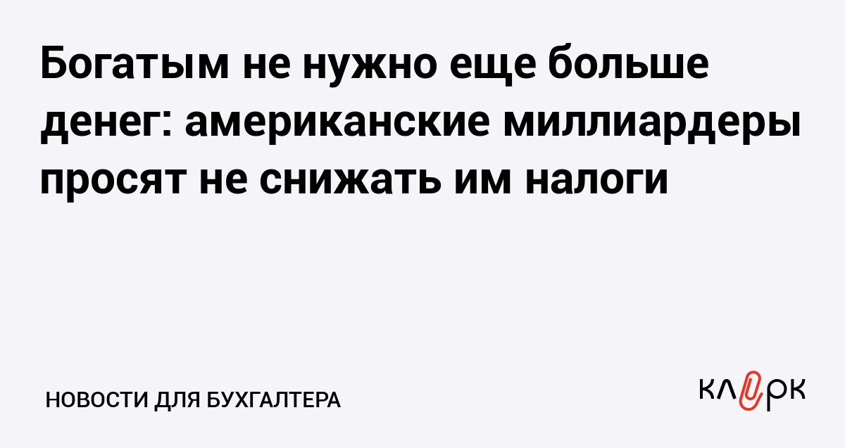 Богатым не нужно еще больше денег: американские миллиардеры просят не снижать им налоги