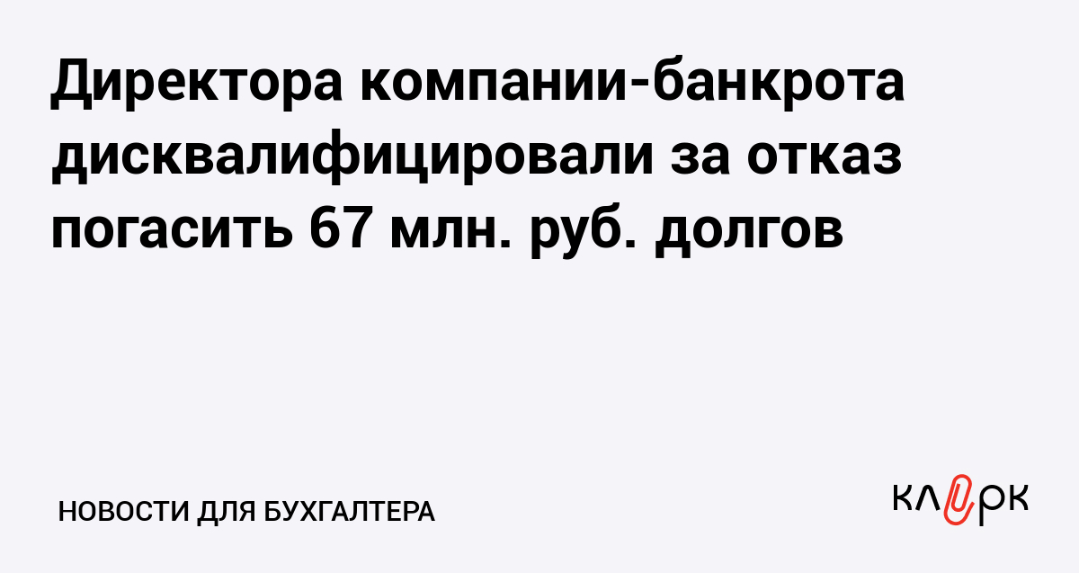 Директора компании-банкрота дисквалифицировали за отказ погасить 67 млн. руб. долгов