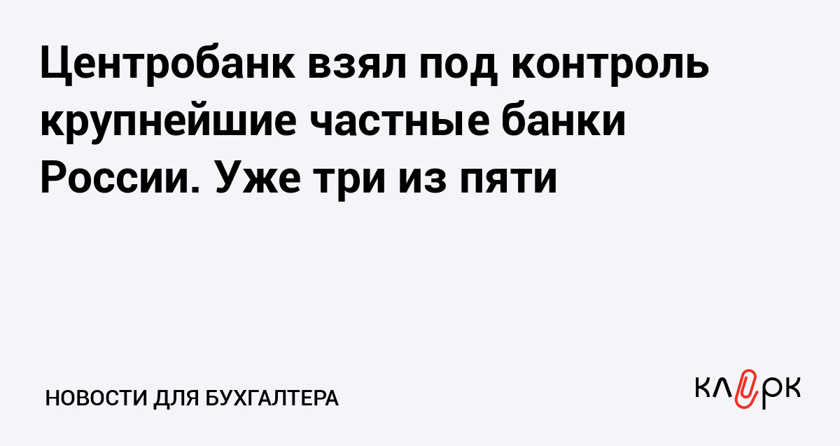 Центробанк взял под контроль крупнейшие частные банки России. Уже три из пяти