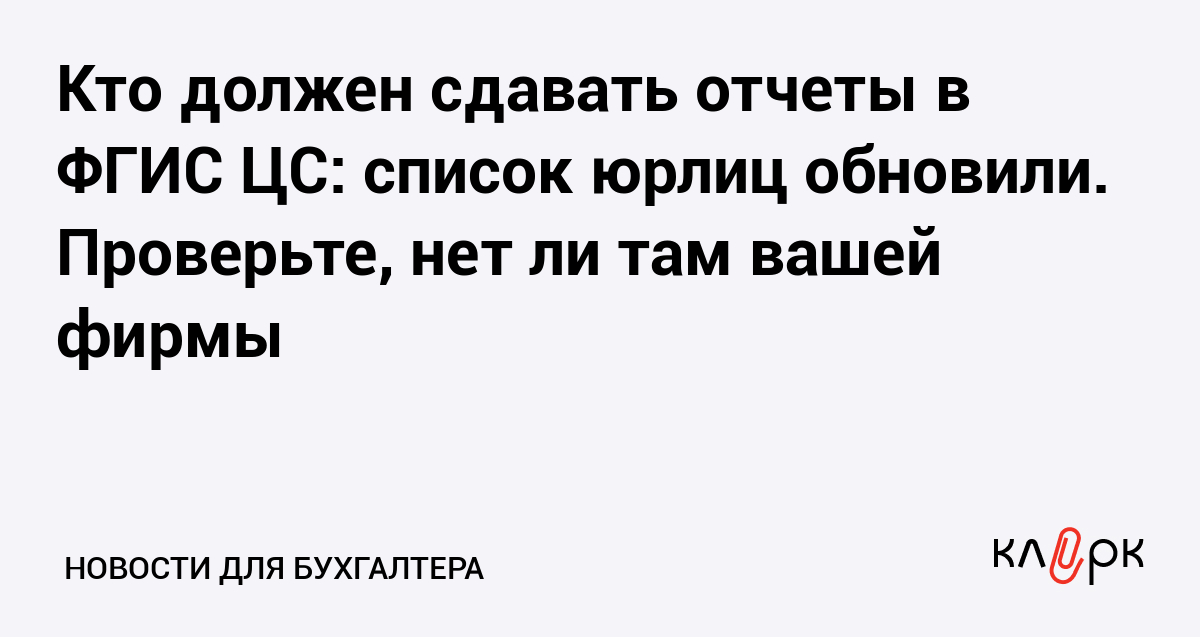 Кто должен сдавать отчеты в ФГИС ЦС: список юрлиц обновили. Проверьте, нет ли там вашей фирмы