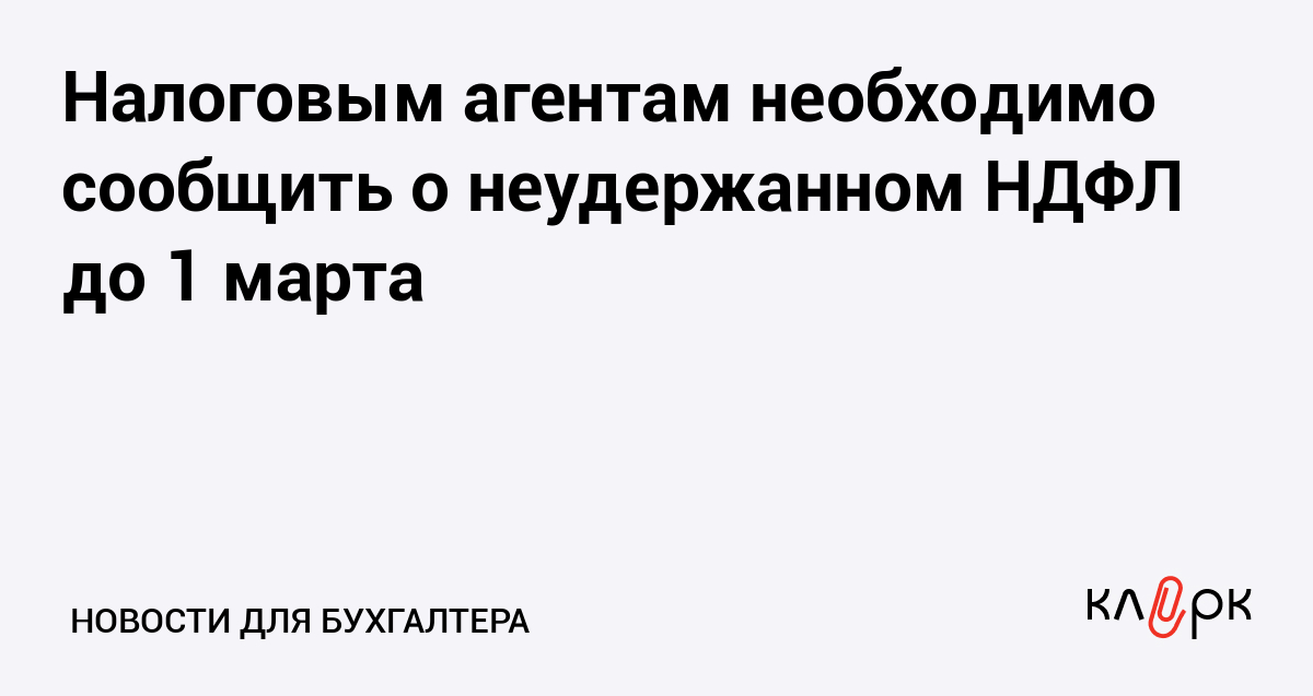 Налоговым агентам необходимо сообщить о неудержанном НДФЛ до 1 марта
