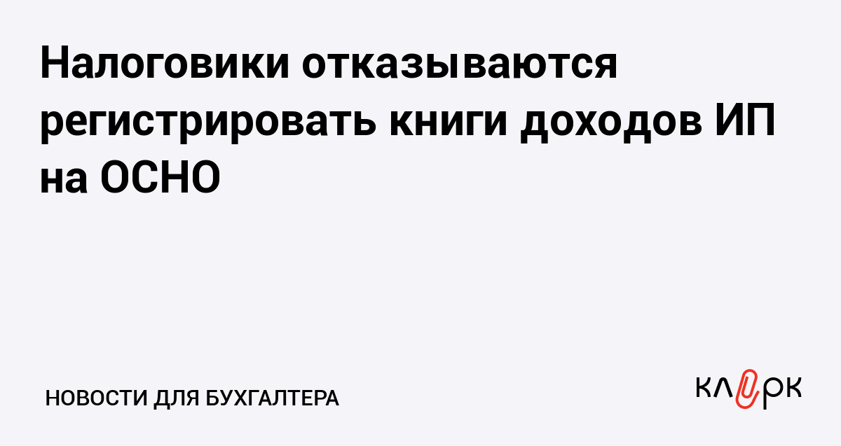 Налоговики отказываются регистрировать книги доходов ИП на ОСНО