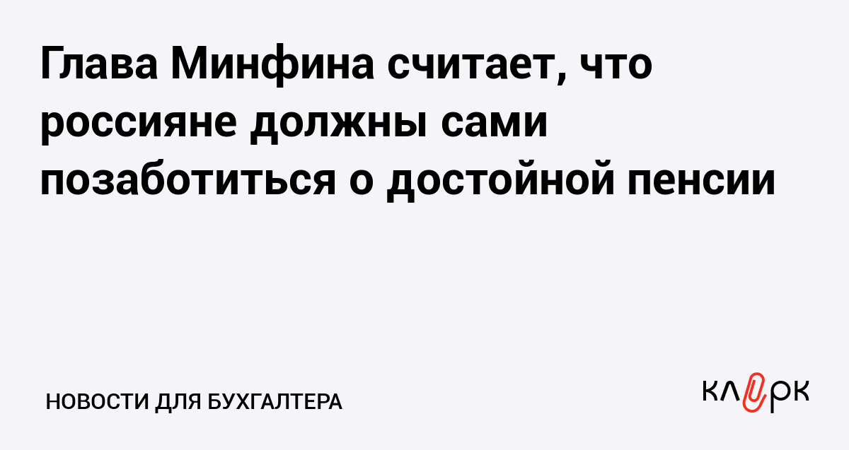 Глава Минфина считает, что россияне должны сами позаботиться о достойной пенсии