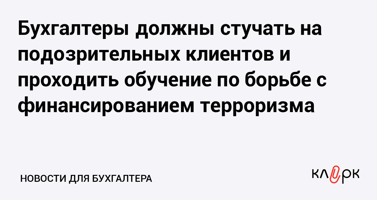 Бухгалтеры должны стучать на подозрительных клиентов и проходить обучение по борьбе с финансированием терроризма