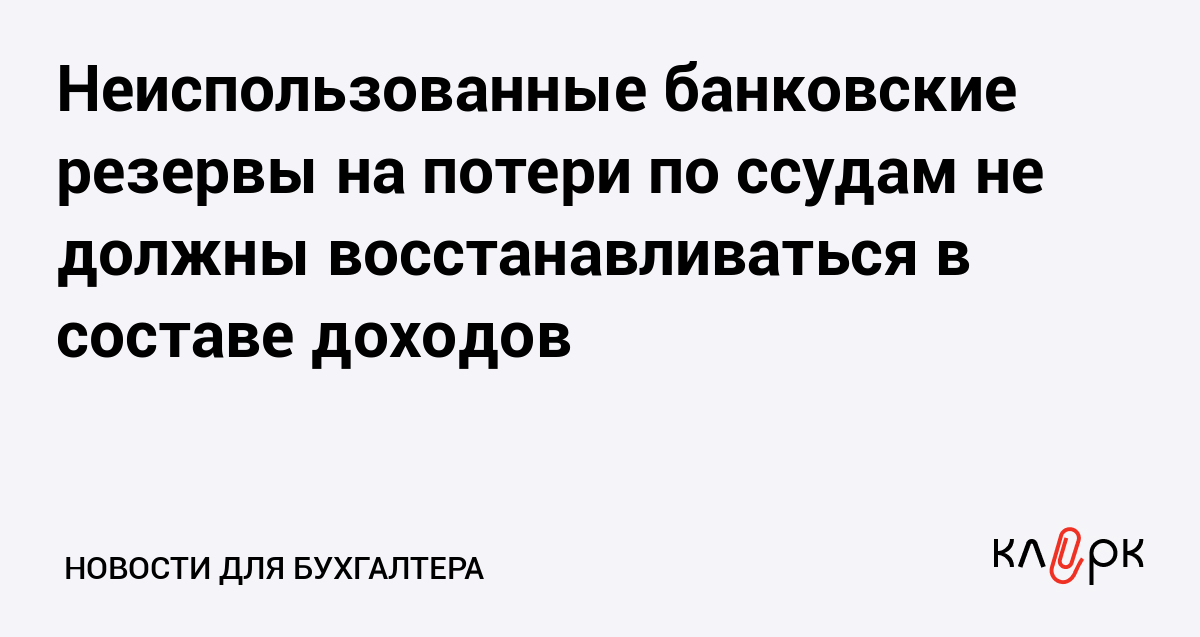 Неиспользованные банковские резервы на потери по ссудам не должны восстанавливаться в составе доходов