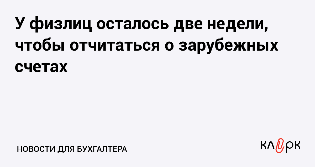 У физлиц осталось две недели, чтобы отчитаться о зарубежных счетах
