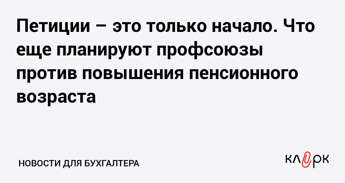 Но это еще не все. Глава Конфедерация труда Борис Кравченко, заявил, что на следующей неделе начнется «более активная фаза» кампании, создание общественного штаба, который определится с порядком коллективных действий по борьбе с повышением пенсионного возраста по всей России, пишет РБК.