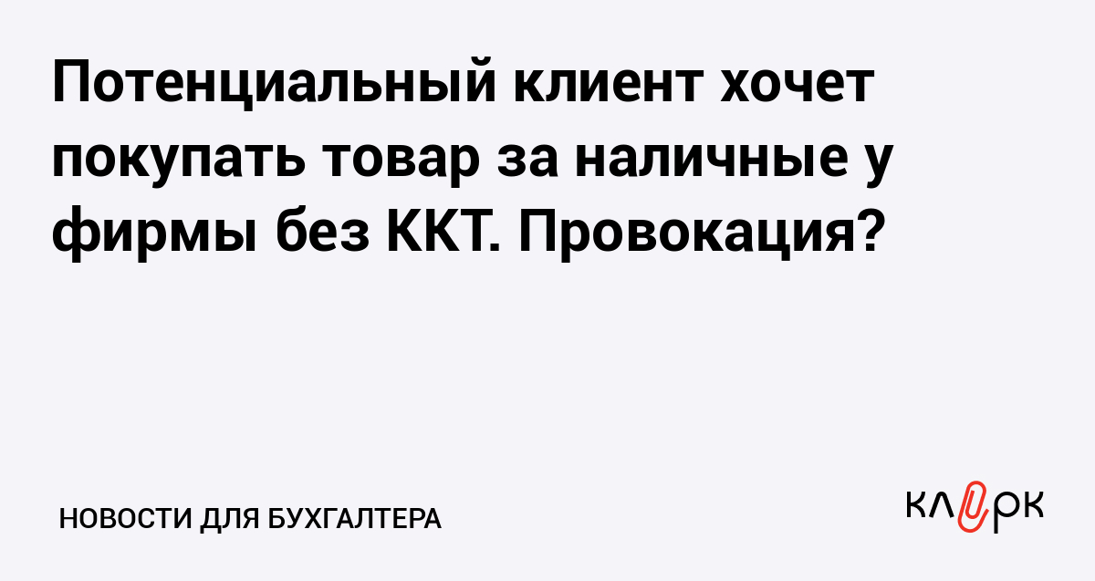 Потенциальный клиент хочет покупать товар за наличные у фирмы без ККТ. Провокация?