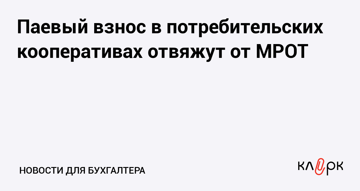 Паевый взнос в потребительских кооперативах отвяжут от МРОТ