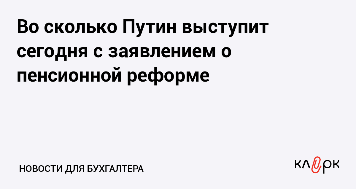 Во сколько Путин выступит сегодня с заявлением о пенсионной реформе