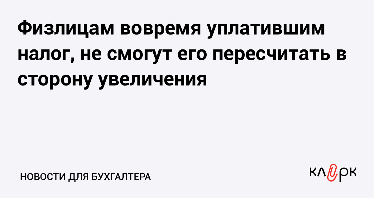 Физлицам вовремя уплатившим налог, не смогут его пересчитать в сторону увеличения