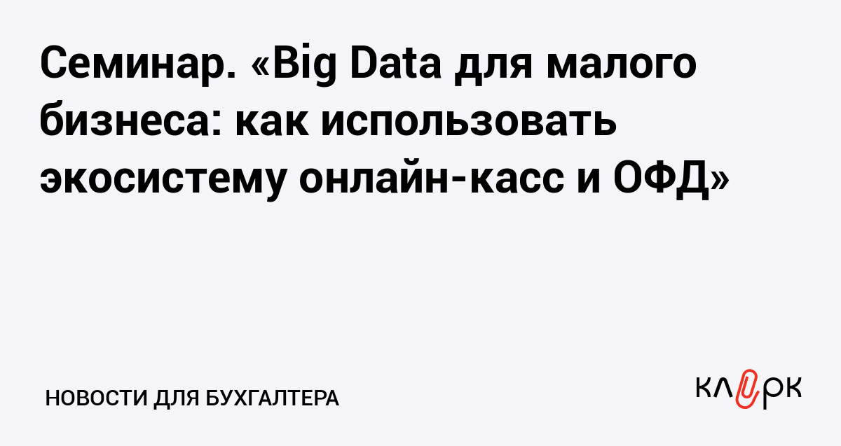 Семинар. «Big Data для малого бизнеса: как использовать экосистему онлайн-касс и ОФД»