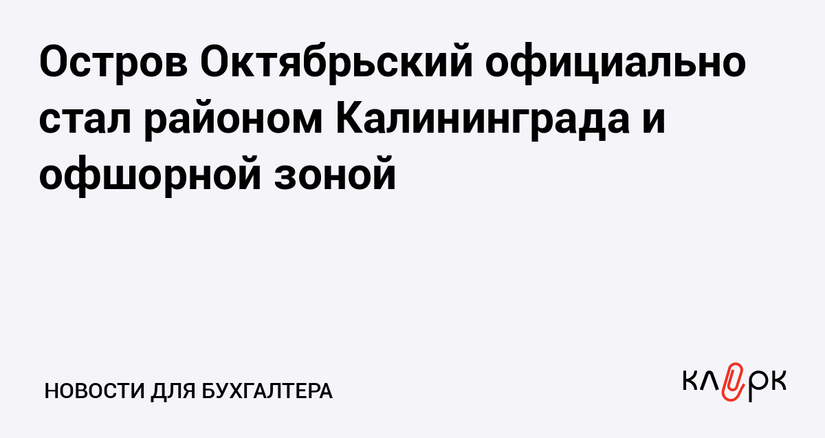 Остров Октябрьский официально стал районом Калининграда и офшорной зоной