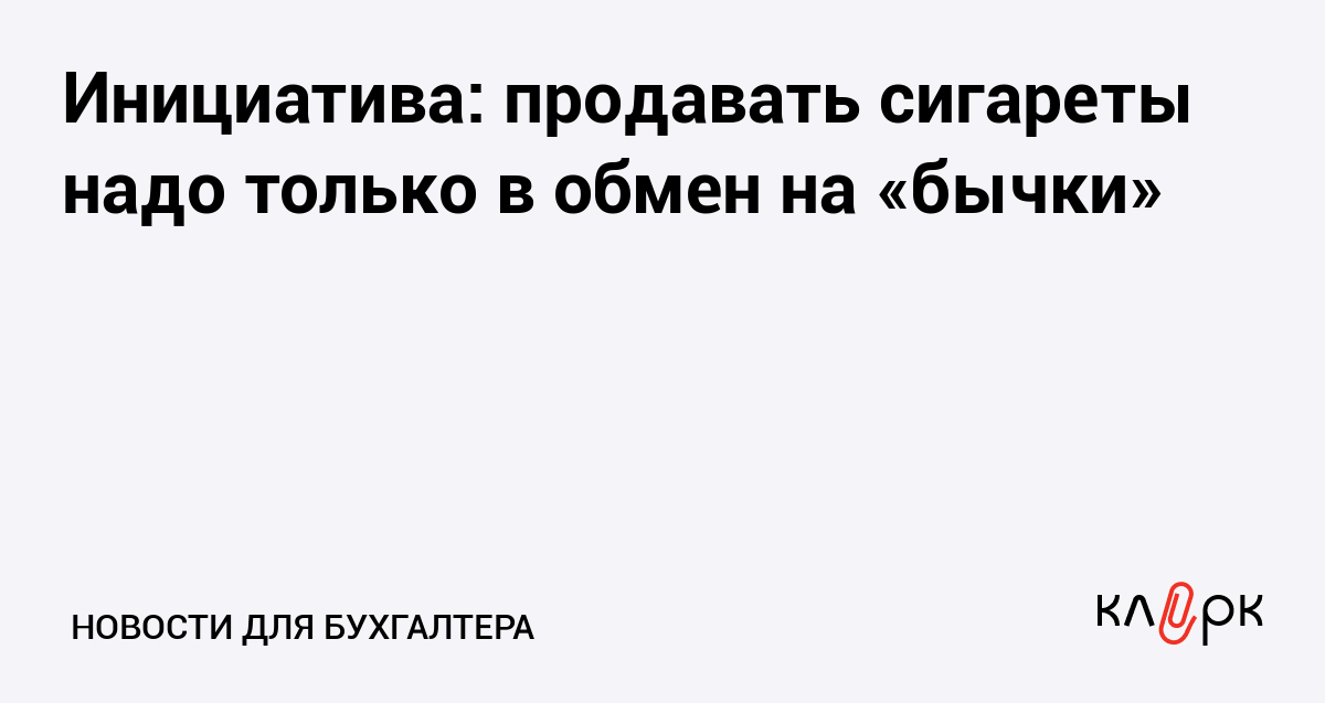 Необходимо ввести в закон положение, разрешающее продажу сигарет только в обмен на сданные использованные/выкуренные сигареты (окурки), в пропорции один к одному. Запретить продажу сигарет лицам, не сдающим окурки, следует из инициативы, размещенной на сайте РОИ.