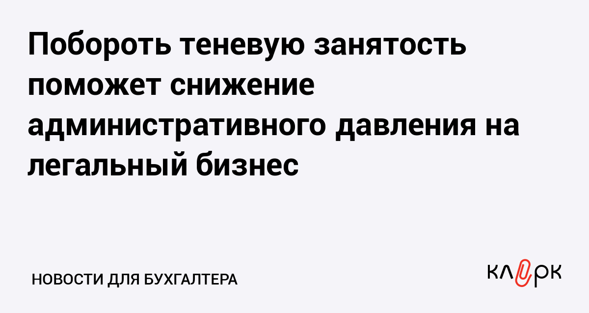 Побороть теневую занятость поможет снижение административного давления на легальный бизнес