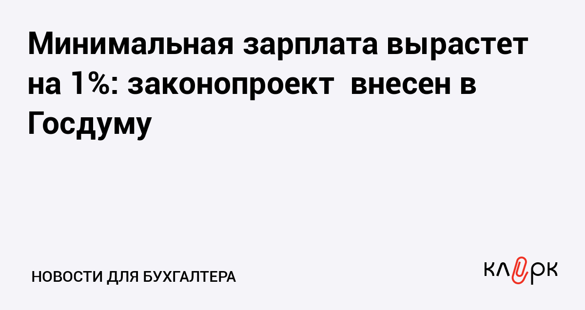 Минимальная зарплата вырастет на 1%: законопроект внесен в Госдуму