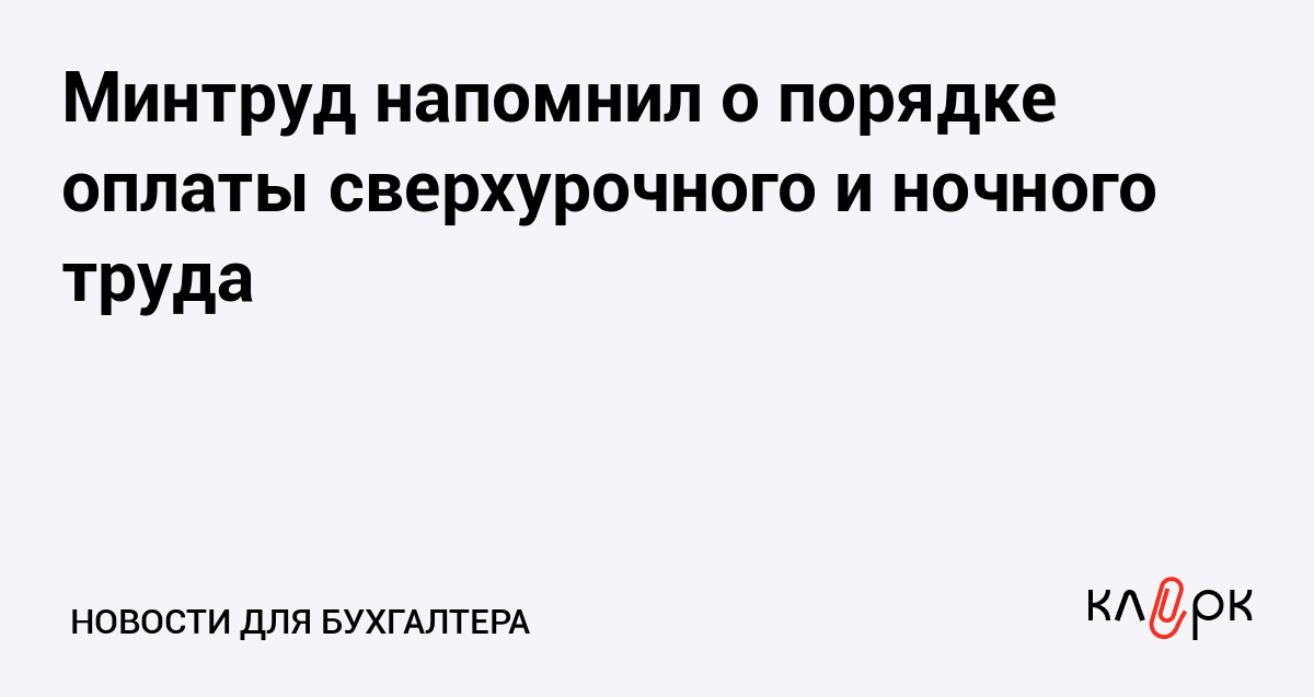 Минтруд напомнил о порядке оплаты сверхурочного и ночного труда