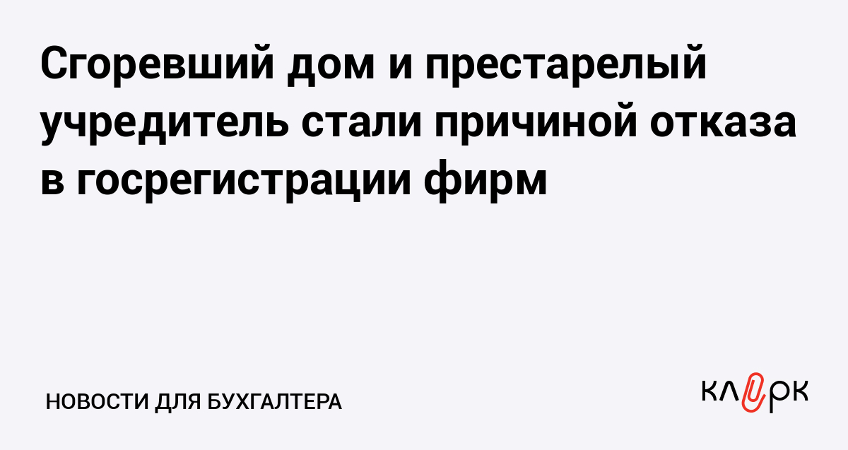 Сгоревший дом и престарелый учредитель стали причиной отказа в госрегистрации фирм