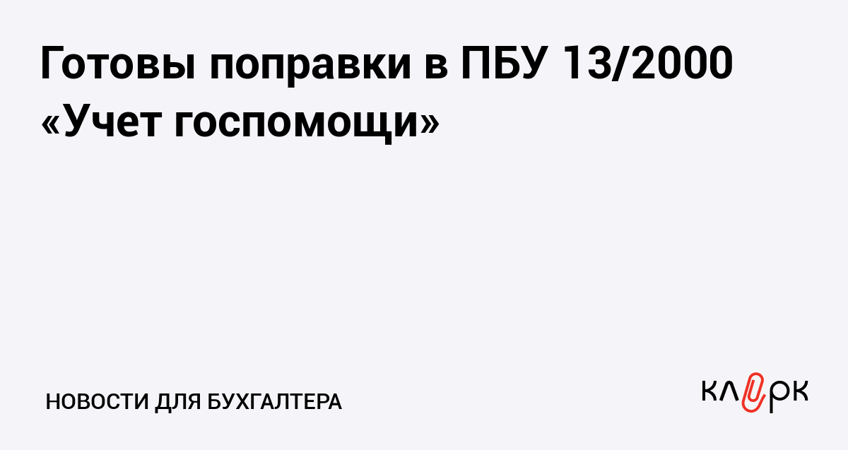 Готовы поправки в ПБУ 13/2000 «Учет госпомощи»