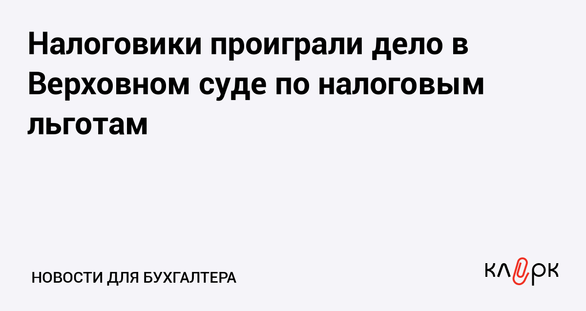 Налоговики проиграли дело в Верховном суде по налоговым льготам