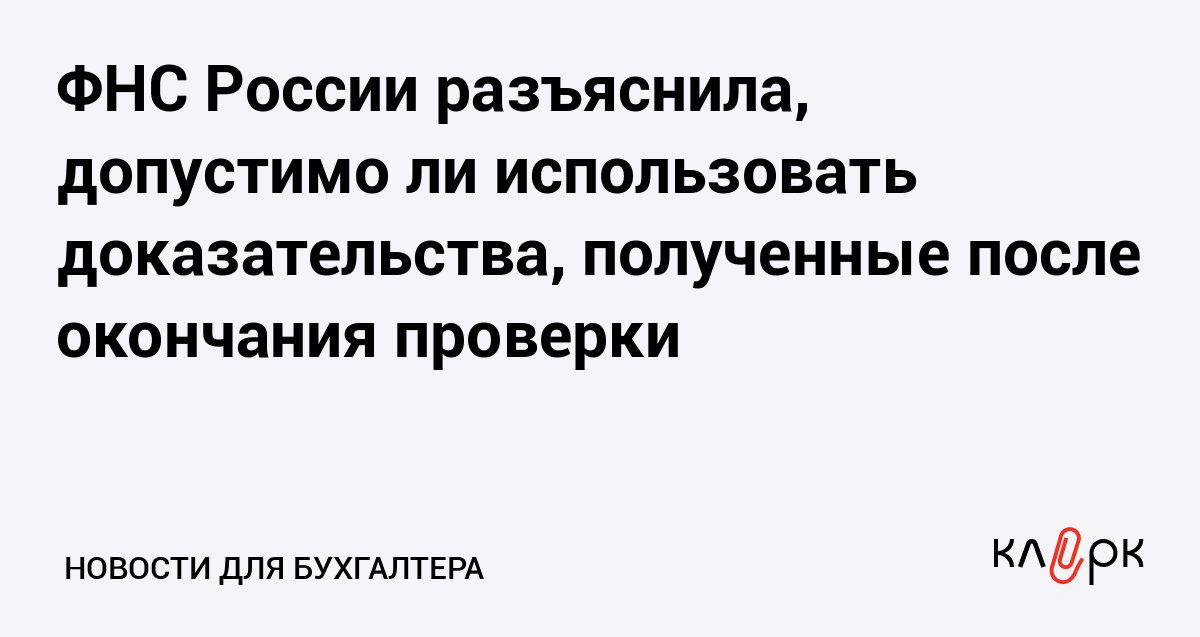 ФНС России разъяснила, допустимо ли использовать доказательства, полученные после окончания проверки