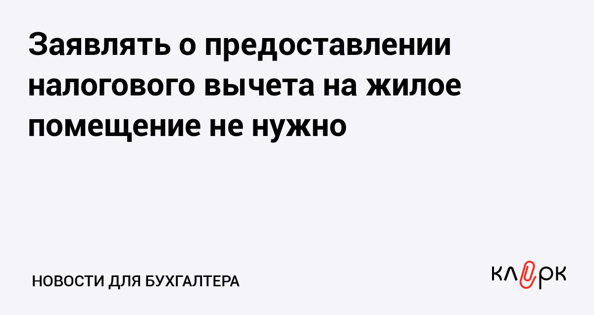 Заявлять о предоставлении налогового вычета на жилое помещение не нужно