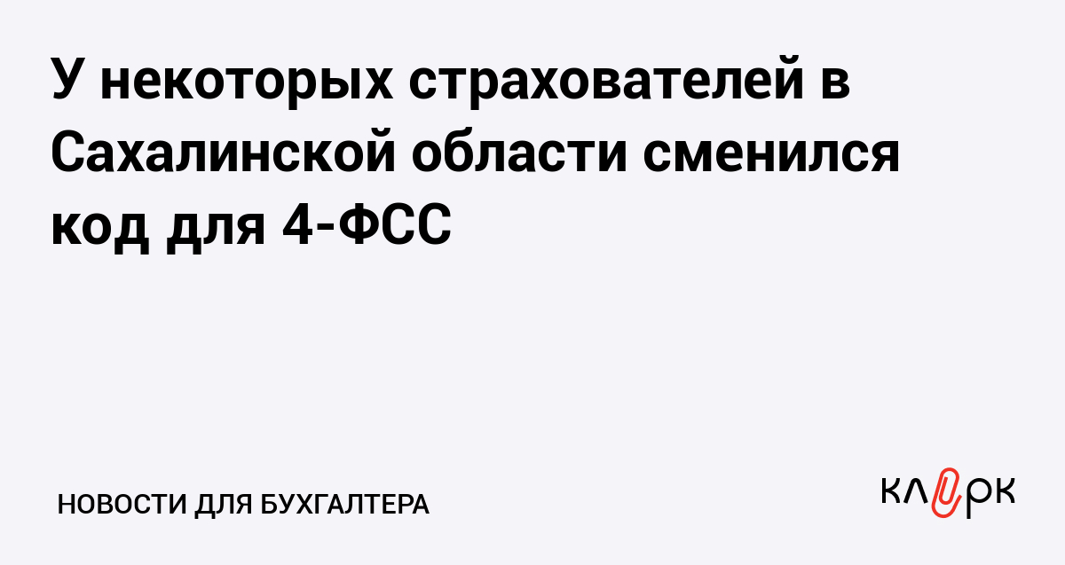У некоторых страхователей в Сахалинской области сменился код для 4-ФСС