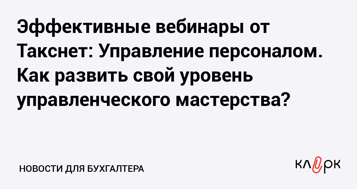 Эффективные вебинары от Такснет: Управление персоналом. Как развить свой уровень управленческого мастерства?