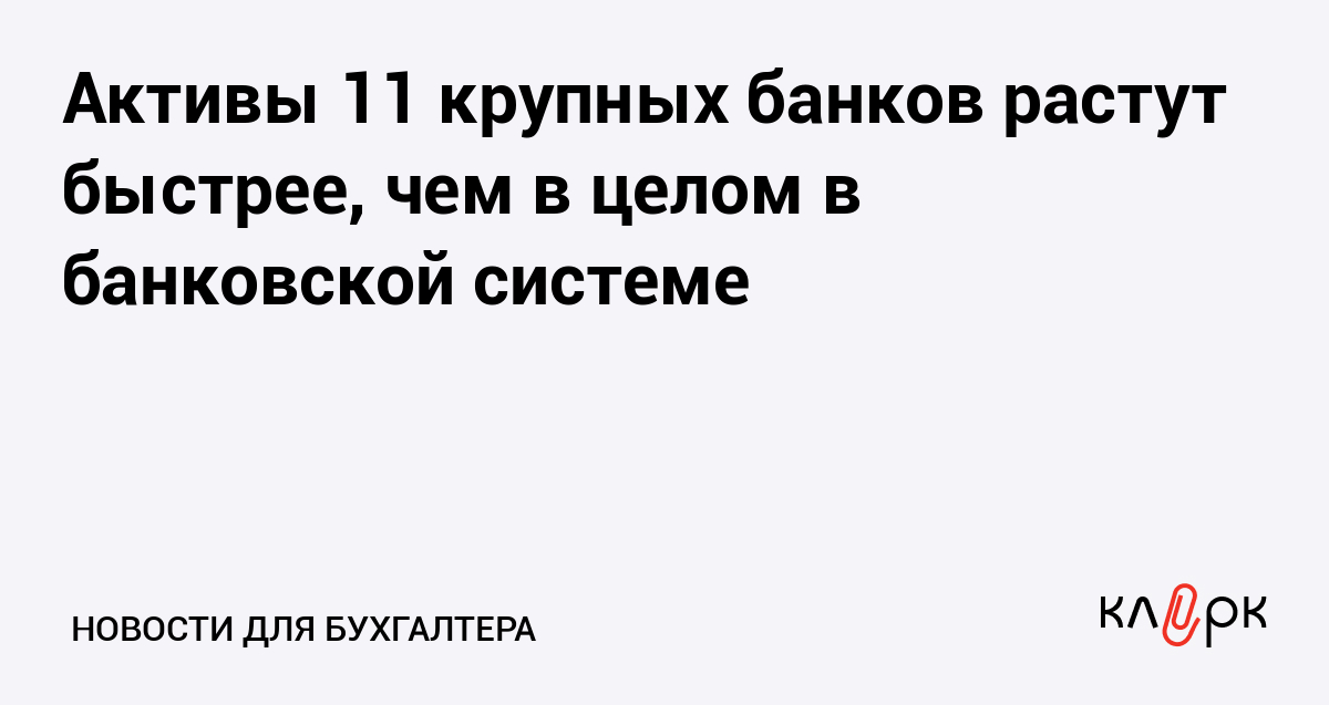 Активы 11 крупных банков растут быстрее, чем в целом в банковской системе