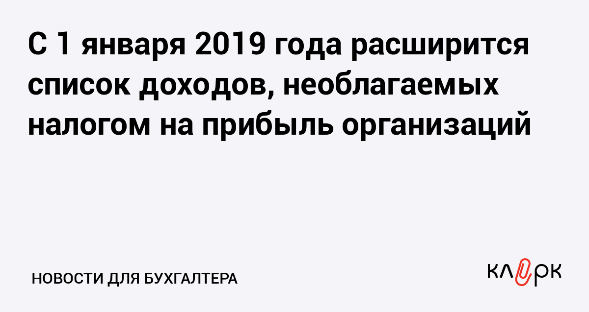 С 1 января 2019 года расширится список доходов, необлагаемых налогом на прибыль организаций