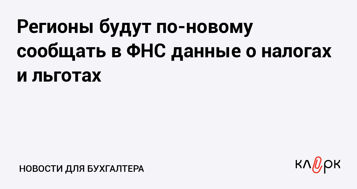 Регионы будут по-новому сообщать в ФНС данные о налогах и льготах