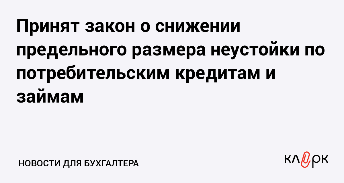 Принят закон о снижении предельного размера неустойки по потребительским кредитам и займам