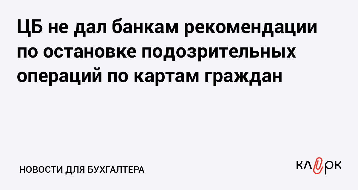 ЦБ не дал банкам рекомендации по остановке подозрительных операций по картам граждан