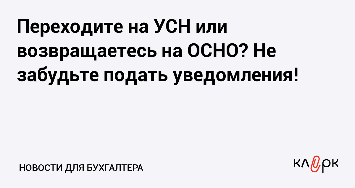 Переходите на УСН или возвращаетесь на ОСНО? Не забудьте подать уведомления!