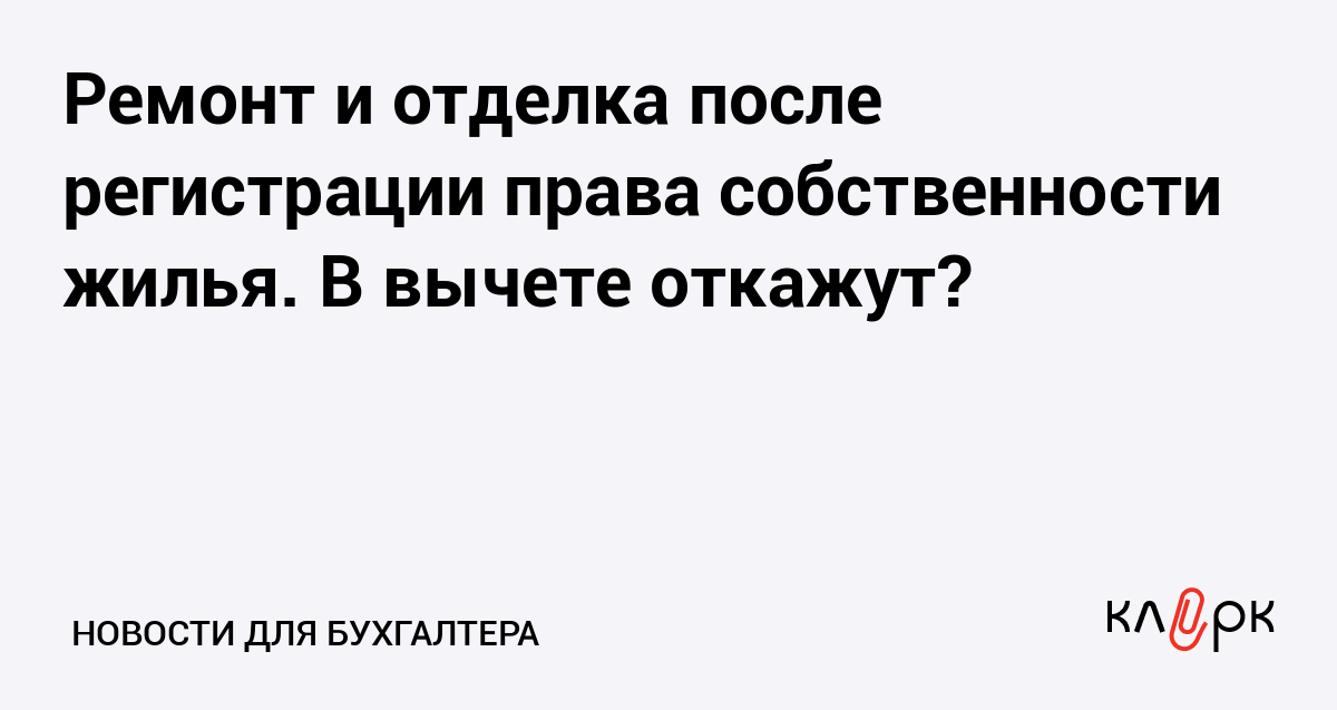 Ремонт и отделка после регистрации права собственности жилья. В вычете откажут?