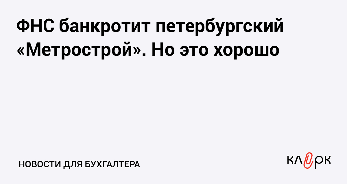 ФНС банкротит петербургский «Метрострой». Но это хорошо