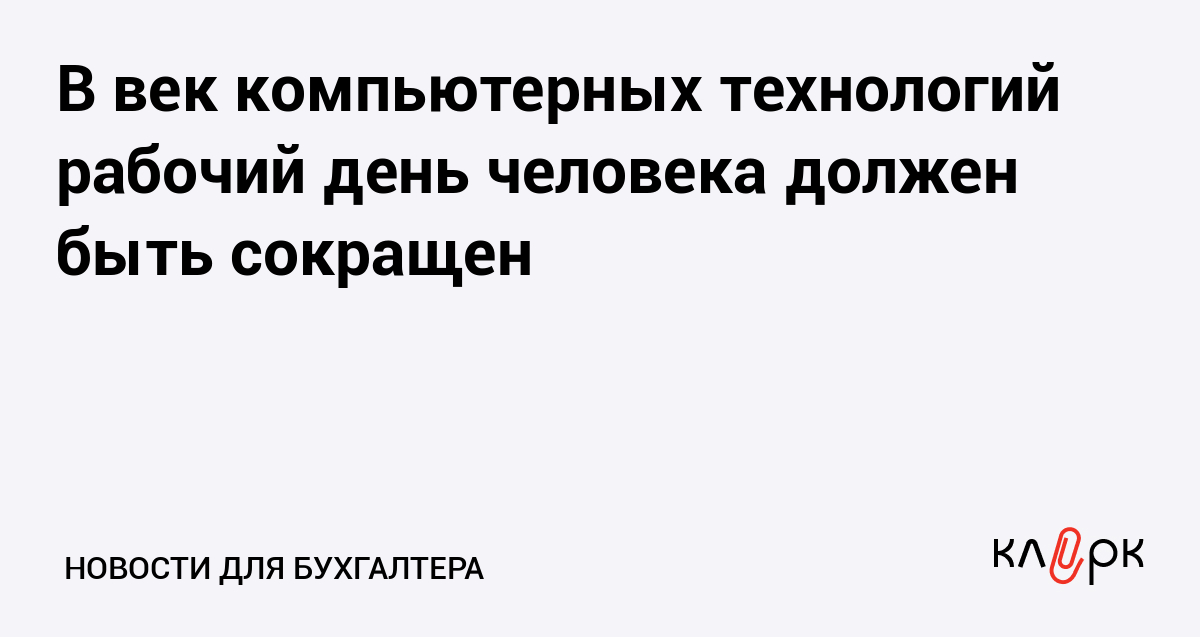 В век компьютерных технологий рабочий день человека должен быть сокращен